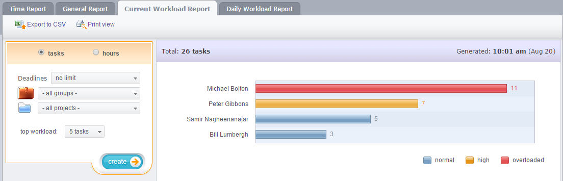 Daily Workload Report shows you the distribution of tasks/hours through the next X days