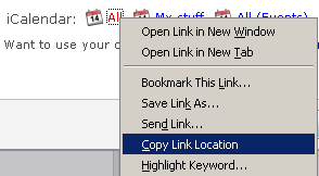 - Copy the iCalendar URL from 5pm screen - make sure you use the "...(Events)" link (right click + "Copy Shortcut" in Internet Explorer). Note: do not click the link. If you click the link, the calendar will be opened in Outlook as a Calendar Snapshot, which is not updated.