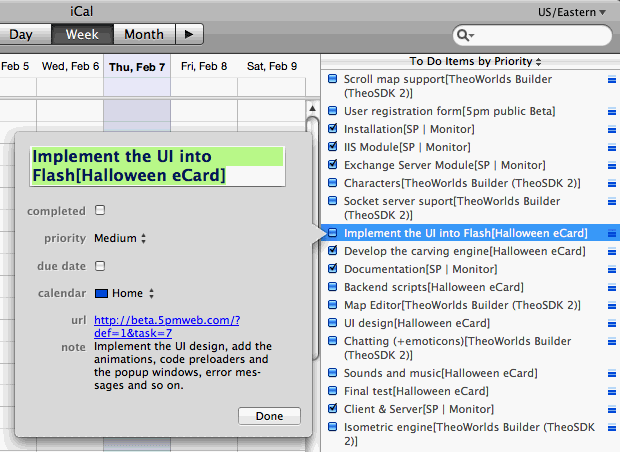 5pm tasks imported into Apple iCal as To Do items: