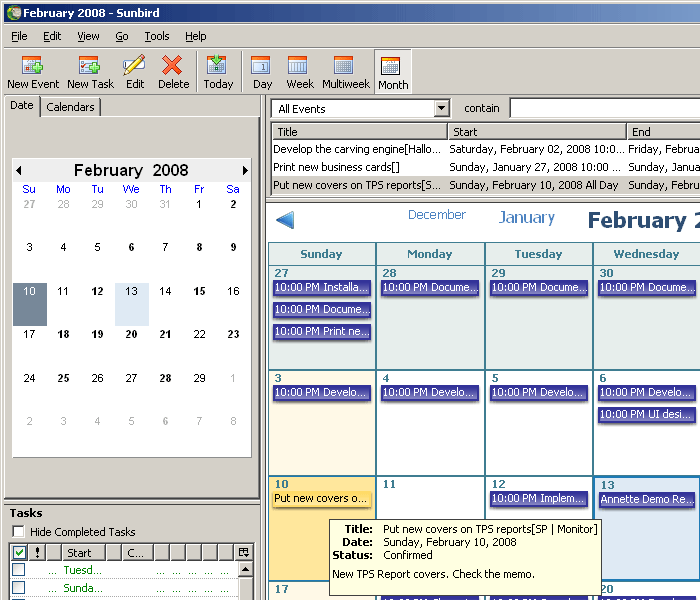 5pm tasks imported into Mozilla Sunbird as Events: