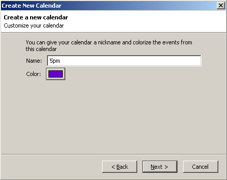 At this step you can give your new calendar a name, color, description and auto-refresh rate.